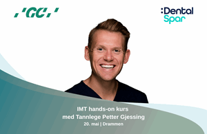 Kurs med Petter Gjessing DentalSpar og GC inviterer til et eksklusivt IMT hands-on kurs i Drammen 20. mai. Kurset ledes av tannlege Petter Gjessing, som vil gi deg en praktisk og klinisk rettet introduksjon til Injection Molding Technique (IMT). Tannlege Petter Gjessing Johnsen er utdannet ved Universitetet i Oslo og har fokus på biomimetisk, vevsvennlig og estetisk tannbehandling. Han er eier av Frisk Tannhelse i Tønsberg og Studio Smile i Oslo, og driver også profilen “Tanndoktor”. Gjennom en kombinasjon av teori og hands-on arbeid får du innsikt i hvordan IMT kan implementeres i din egen kliniske hverdag. Du vil arbeide med GC-materialer og lære en strukturert tilnærming til behandlingen – fra planlegging og materialvalg til gjennomføring og ferdigstillelse. Dette er en workshop i mindre grupper, hvor det legges til rette for tett oppfølging, faglig diskusjon og erfaringsutveksling.Kursprogram 16:00 – 16:30 Velkommen og bevertning16:30 – 18:00 Teori18:00 – 18:30 Pause og snacks18:30 – 20:00 Hands-on, diskusjon og spørsmål I forbindelse med kurset tilbys en eksklusiv produktpakke fra GC som inkluderer:– G-premio Bond 5 ml 1stk.– G-ænial Universal Injectable sprøyte 1,7 g 2 stk. Ordinær verdi: 2 326 krKurspris: 1 300 kr Plassene er begrenset – meld deg på for å sikre din plass. Meld deg på her. Tidspunkt Starter: 20.05.2026 16:00Slutter: 20.05.2026 20:00 Registrer deg innen: 09.05.2026 19:00 Sted Tollbugata 115 3041 Drammen Kategorier Kurs uten produktpakke2 000,00 kr Kurs med produktpakke3 300,00 kr Kontakt Kontaktinfo:Maroa Alhassanmaroa@dentalspar.noTlf: 97418862