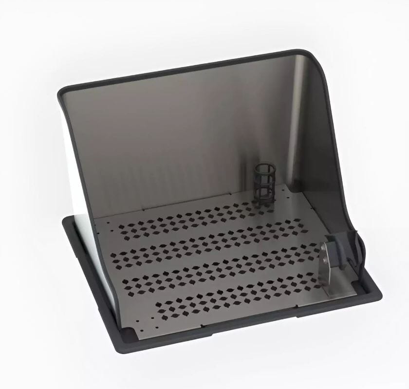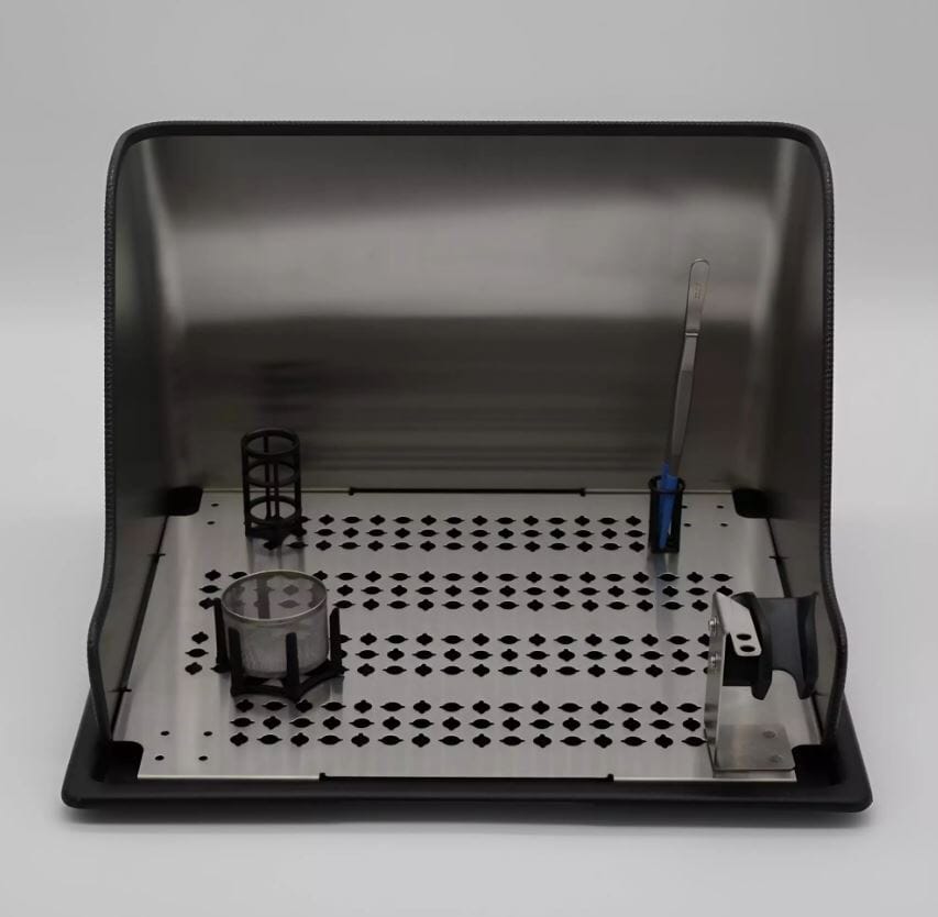 Bajonettåpninger i bunnplaten gir mulighet for montering av tilbehør, og bunnbrettet rommer opptil 2 liter væske