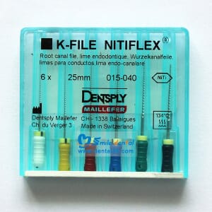 Fleksible håndinstrumenter av nikkel-titan, ISO-fargekodede plast-håndgrep med påmontert silikon-stopp.