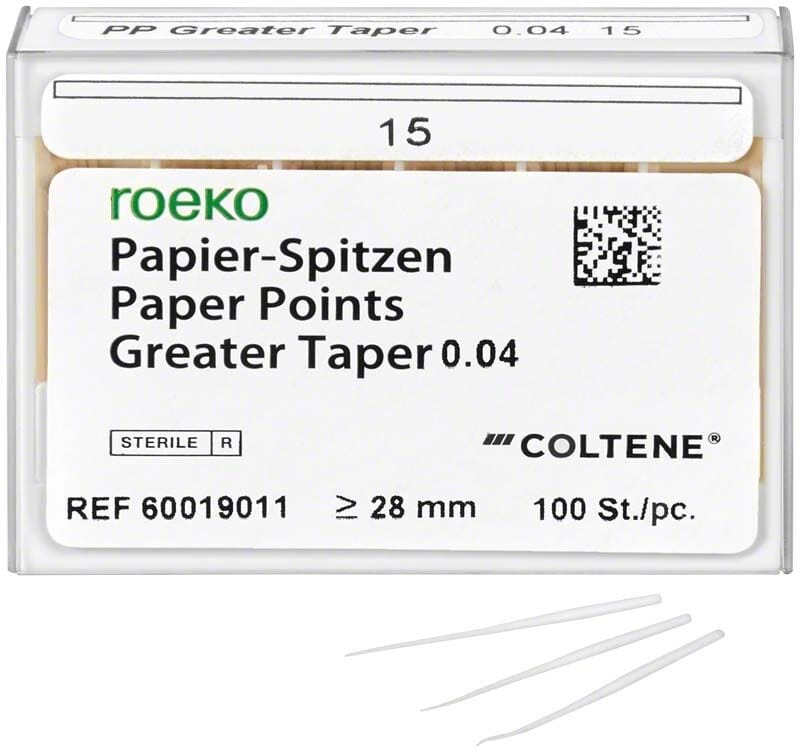 Roeko Paper Points skyvboks 100stk Greater Taper .04 15 Hvit