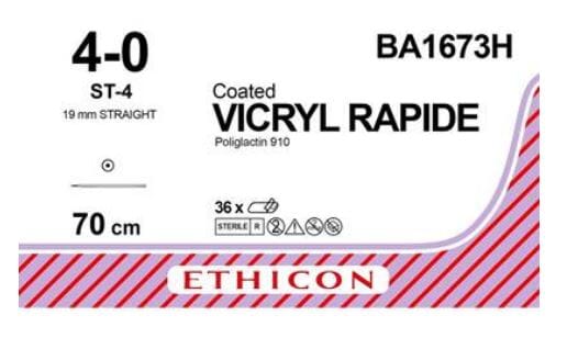 Materiale: Polyglactin 910 (syntetisk, flertrådet absorberbar suture)