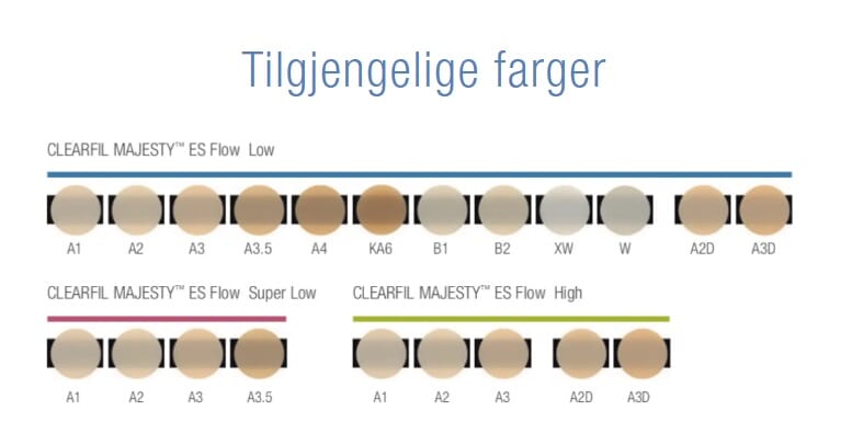 Flytende kompositt med høy fyllstoffandel som kombinerer god flyteevne med høy styrke. Clearfil Majesty ES Flow High gir presis applisering og svært god tilpasning til kavitetens vegger, noe som gjør materialet ideelt som liner, base eller til mindre restaureringer.