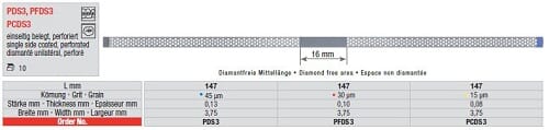 Perforerte pussestrips for en optimal pussing og polering aproksimalt.Bredde 3,75 mmLengde: 147 mm
