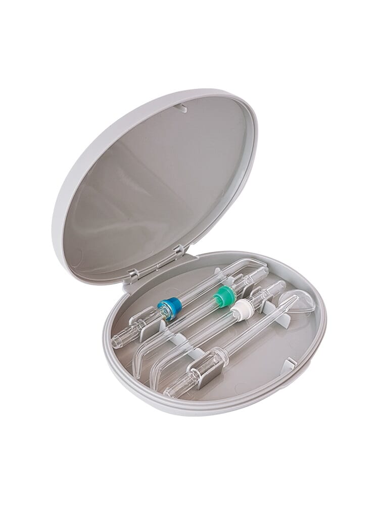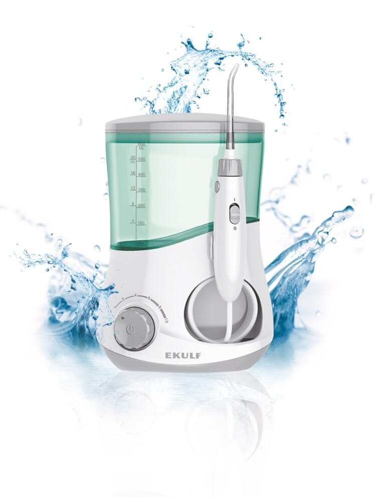PowerFlosser fjerner plakk og bakterier mellom tennene og dypt ned i tannkjøttlommene der vanlig tanntråd ikke kommer til. Vannstrålen pulserer 1400 ganger pr minutt, masserer tannkjøttet og gir en øket blodsirkulasjon. Holder tannkjøttet ditt friskt og sterkt og er mere skånsomt enn tradisjonell tanntråd. Tippen kan roteres 360 grader og strålen gjør det enklere å rengjøre rundt tannreguleringer, broer og implantater. Vannbeholderen rommer 6 dl vann og har en 1 m lang vannslange for at man enkelt skal kunne bruke den i baderommet. Powerflosseren har automatisk avstengning etter 2 minutter og har et minimalt lydnivå. Powerflosseren levereres med 3 x Standard Nozzle tip som løsner plakk mellom tennene og dypt ned i tannkjøttlommene og 1 x Tongue scraper som er perfekt for å rengjøre tungens overflate fra bakterier, matrester samt døde celler.