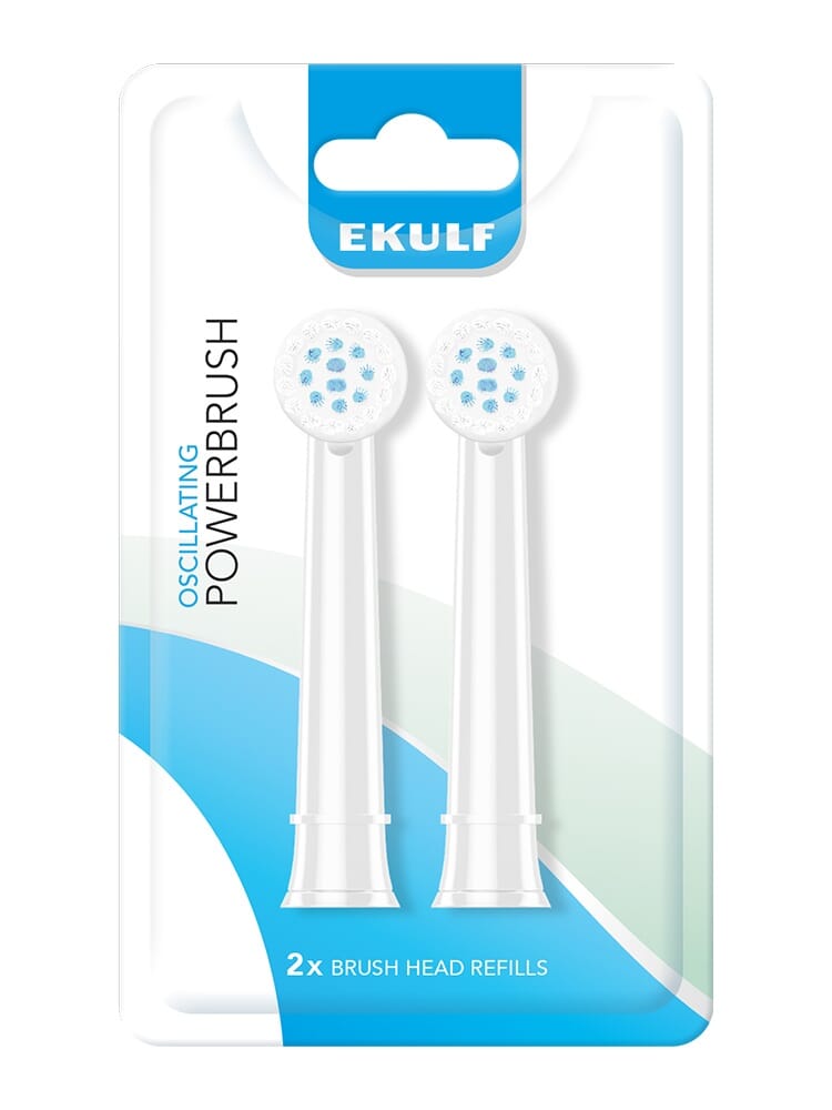EKULF Oscillerende PowerBrush børstehodet er lite og rundt for å få tilgang til hele tannen. Børstehodet er designet for å nå selv vanskelig tilgjengelige områder mellom tennene og fjerner plakk effektivt.