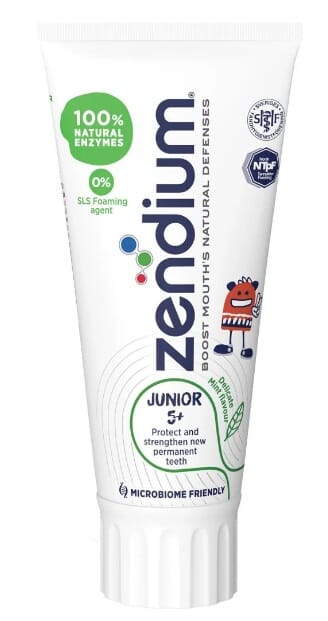 Den inneholder fluor (1450 ppm), proteiner og enzymer som styrker munnens naturlige forsvar og forebygger karies. Uten SLS, med mild smak av røde bær, 93?% naturlige ingredienser og miljøvennlig emballasje.
