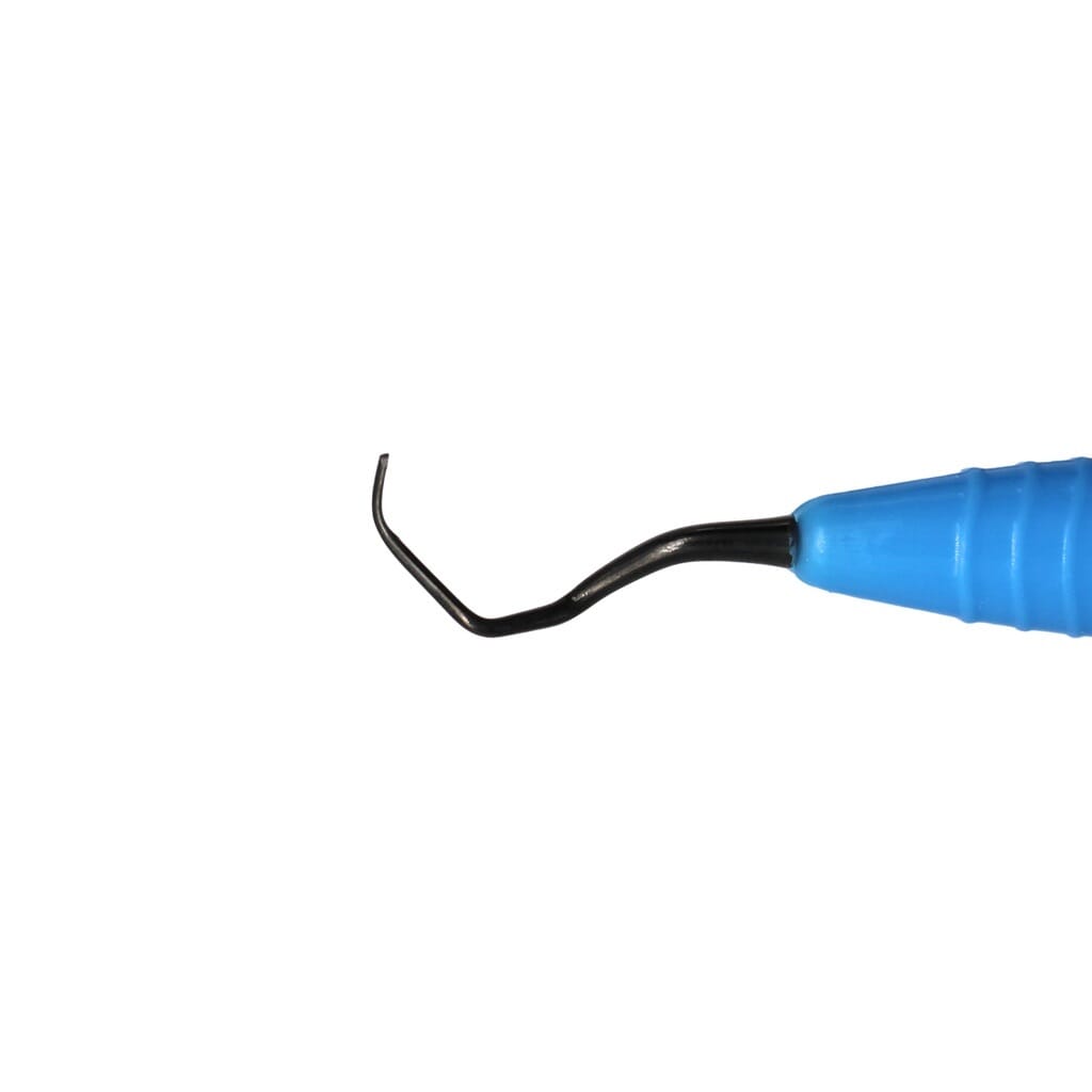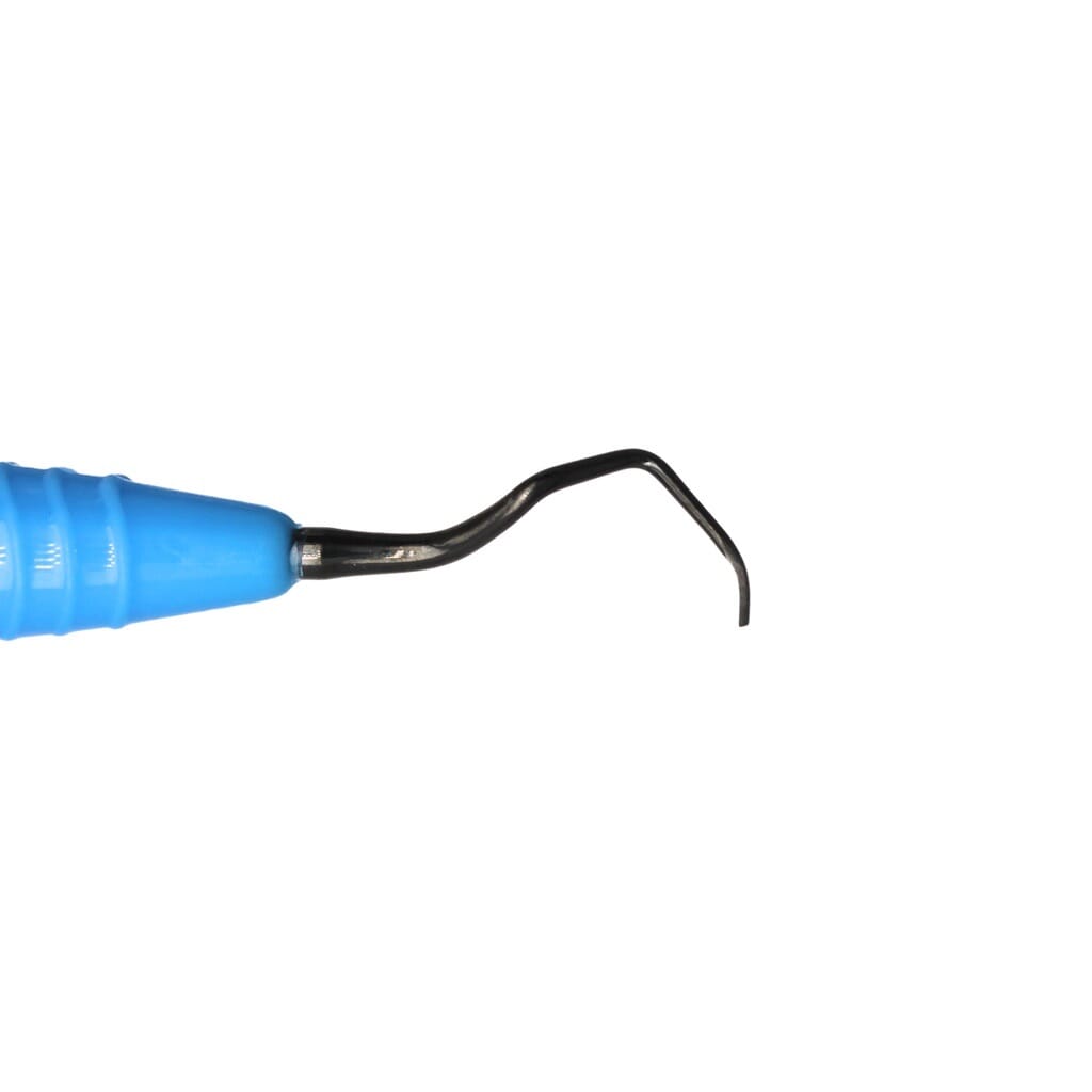 Gracey 17-18 fra InstruDents X er designet for å gi bedre tilgang til de distale flatene på bakerste tenner. Skaftet har flere bøyer som gir klaring for kroner og hindrer forstyrrelser fra håndtaket mot motsatte tenner og tannbuen. Instrumentet kan enkelt nå dype periodontale lommer. Den kortere bladlengden gir også bedre tilgang til rotkonkaviteter og furkaturer.