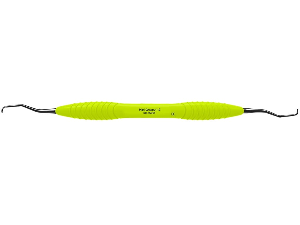 MA Dentals Mini Gracey 1-2 IDX Sharp-instrument brukes til å fjerne dyp subgingival tannstein. Det er helt vedlikeholdsfritt, polert, holdbart og gir langvarig skarphet. Det anses som et ideelt instrument for tannleger og tannpleiere som ønsker lite vedlikehold, høy presisjon og langvarig skarphet. Det brukes primært i fremre områder, samt på premolarer og incisiver. Det brukes også til scaling i periodontale lommer som er smale og dype.