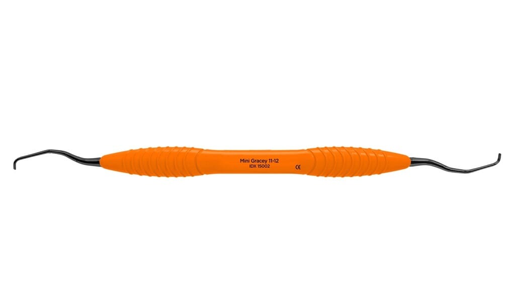 MA Dentals Mini Gracey 11-12 IDX Sharp-instrument brukes til å fjerne dyp subgingival tannstein. Det er helt vedlikeholdsfritt, polert, slitesterkt og gir langvarig skarphet. Det anses som et ideelt instrument for tannleger eller tannpleiere som ønsker lavt vedlikehold, høy presisjon og langvarig skarphet. Instrumentet har en lang terminal skaft for å nå dypere periodontale lommer. Det har et tynnere blad, noe som letter innføring i tannkjøttet og reduserer vevstrekk. Det brukes primært i posteriorområder, premolar- og molarmesiale områder.