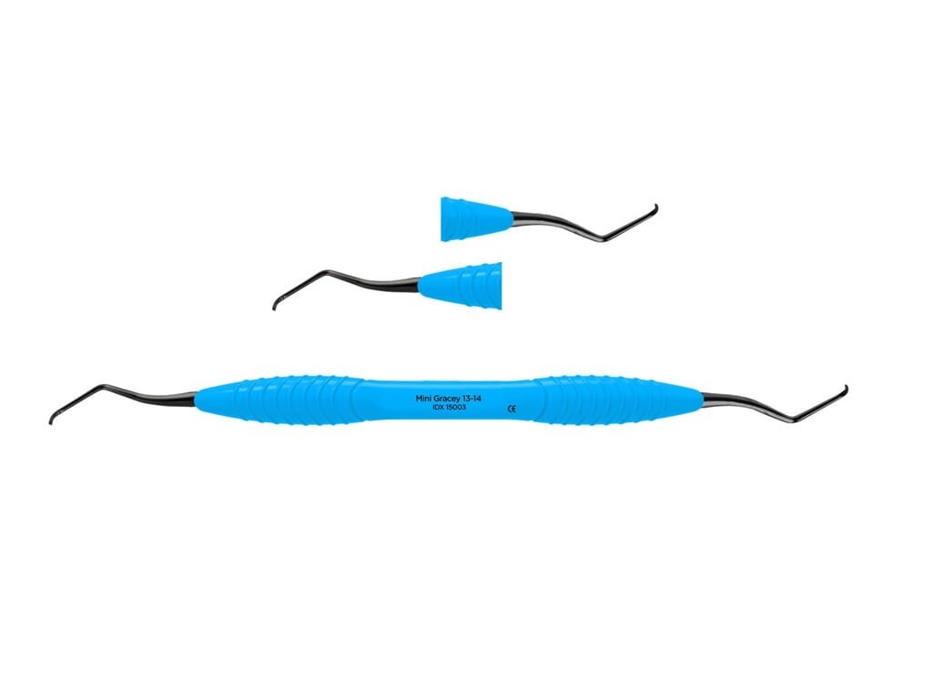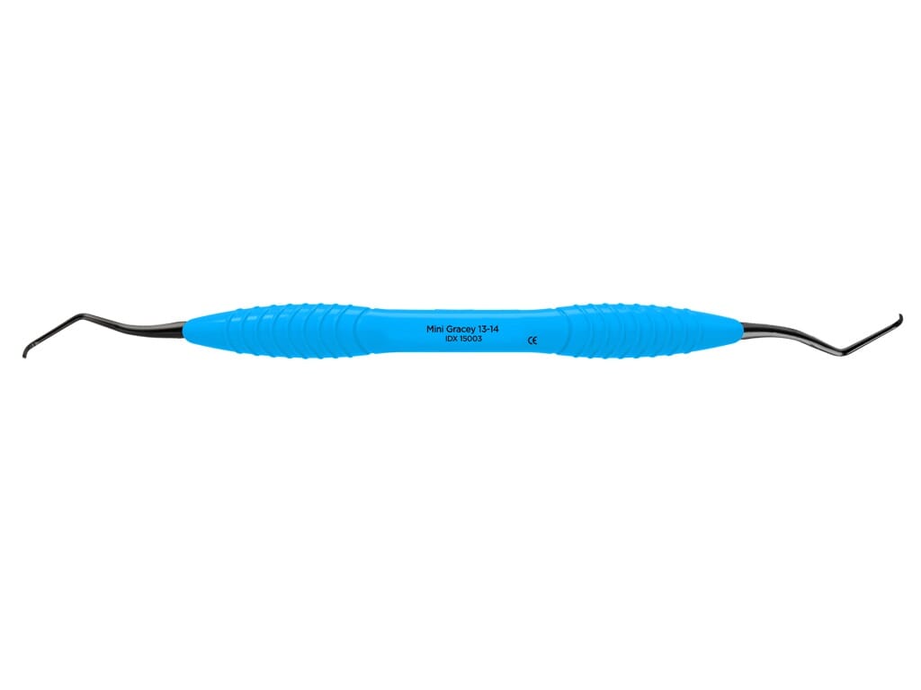 MA Dentals Mini Gracey 13-14 IDX Sharp-instrument brukes til å fjerne dyp subgingival tannstein. Det er helt vedlikeholdsfritt, polert og robust, og gir langvarig skarphet. Det anses som et perfekt instrument for tannleger og tannpleiere som ønsker lavt vedlikehold, høy presisjon og langvarig skarphet. Instrumentet har et terminalskaft som er 3 mm lengre enn Standard Gracey. Det har et smalere og skarpere blad som gir enklere tilgang til dype periodontale lommer. Det brukes mest på posterior distale flater, molarer og premolarer.