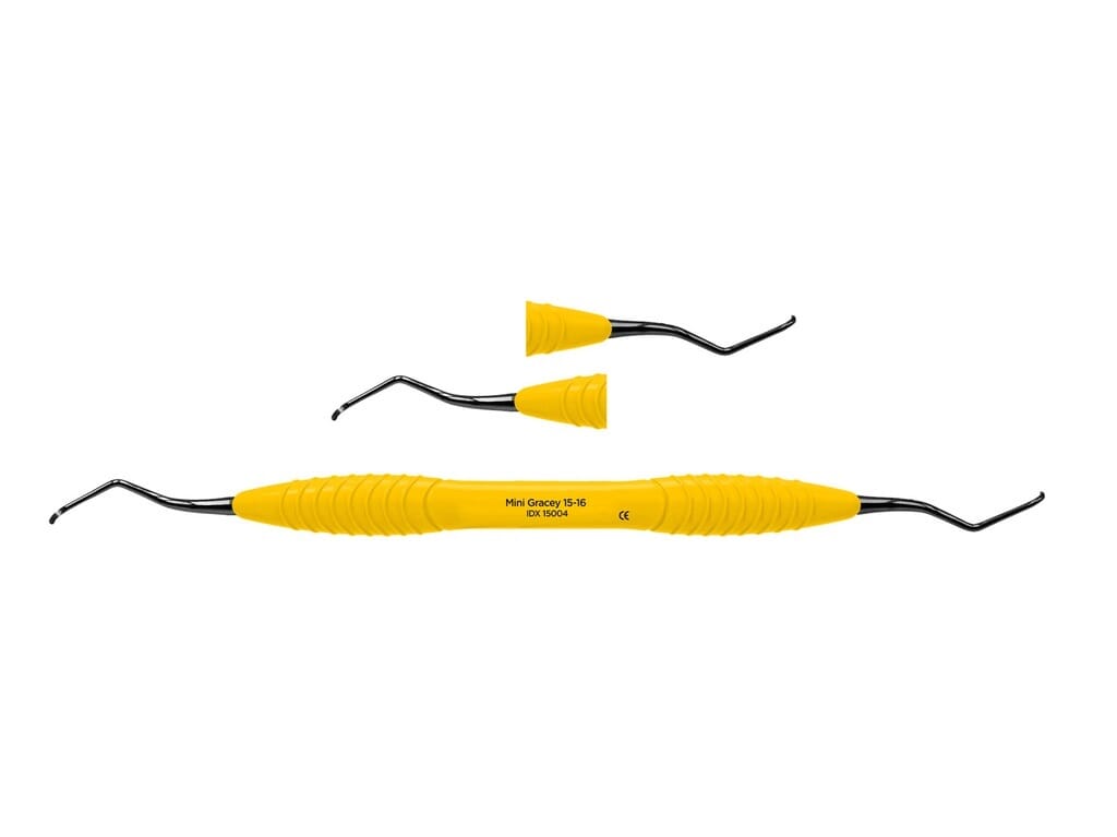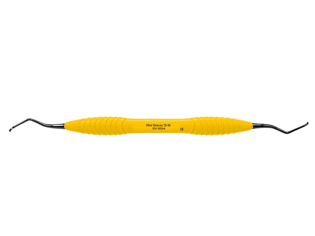 MA Dentals Mini Gracey 15-16 IDX Sharp-instrument brukes til å fjerne dyp subgingival tannstein. Det er helt vedlikeholdsfritt, polert og slitesterkt, og gir langvarig skarphet. Det anses som et perfekt instrument for tannleger og tannpleiere som ønsker lavt vedlikehold, høy presisjon og langvarig skarphet. Det har et mer vinklet blad- og skaftdesign enn Mini Gracey 11-12, noe som gir enklere tilgang. Det brukes primært på mesiale flater av molarer.