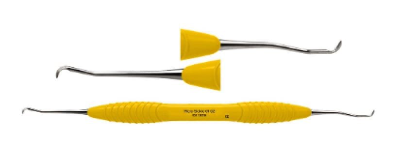 Micro Sickle 01-02 brukes for å fjerne supragingival kalkulus. Det er ekstremt effektive for å nå tette proksimale overflaterog fjerner supragingival tannstein for kanten av tannkjøttet og alle tannoverflater.